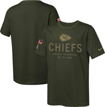 Join the Kansas City Chiefs in supporting those who bravely serve our country with this 2025 Salute to Service Sideline Dri-FIT T-Shirt by Nike. It replicates the military-inspired details and American flag patch the team wears. Lightweight jersey fabric is combined with sweat-wicking technology to keep young fans dry and cool in this patriotic Kansas City Chiefs tee. The NFL does not profit from the sale of Salute to Service products. Charitable contributions are awarded by the NFL Foundation to the NFL's Salute to Service nonprofit military partners.