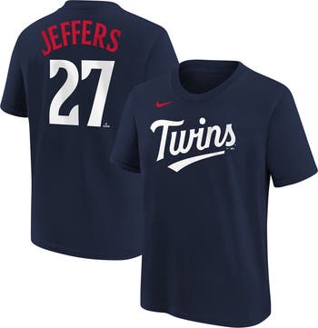Before the Minnesota Twins step on the field for the next game, gear up your youngster in this Ryan Jeffers Player Name and Number T-shirt from Nike. Its lightweight cotton fabric is breathable and comfortable, perfect for the midsummer heat of baseball season. The back features printed graphics that highlight their admiration for one of the team's stars.