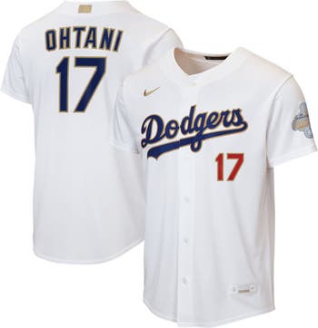 Commemorate the Los Angeles Dodgers' championship glory by grabbing this Shohei Ohtani 2026 Gold Collection Replica Jersey for your young baseball fan. As part of the MLB Gold Collection, this piece honors the reigning World Series winners with elevated, premium style. Built with Nike's moisture-wicking technology, it ensures a cool and dry fit while the heat-applied twill wordmark, sublimated twill player name and numbers, and embroidered Nike Swoosh create an authentic look. With its comfortable fit and essential details, this Nike replica jersey is a must-have for any young Dodgers fan.
