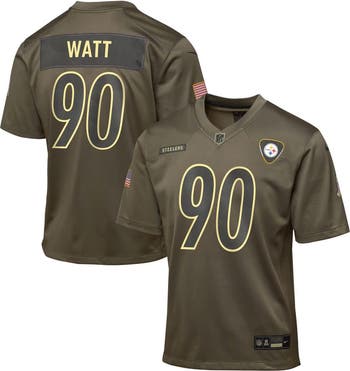 Join the Pittsburgh Steelers in honoring those who bravely serve our country with this T.J. Watt 2025 Salute to Service Game Jersey by Nike. Its military-inspired design replicates what the team wears and displays an American flag patch. Smooth fabric and breathable mesh panelshelp young Pittsburgh Steelers fans stay cool and comfortable all day in this special T.J. Watt jersey. The NFL does not profit from the sale of Salute to Service products. Charitable contributions are awarded by the NFL Foundation to the NFL's Salute to Service nonprofit military partners.