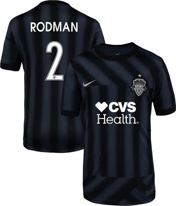 Gear up your young soccer star with this Trinity Rodman Washington Spirit 2025 Blackout Kit Replica Player Jersey from Nike. This kit represents the energy and sound heard all across the region when the Spirit take the pitch. The classic-fit replica design is inspired by what your kiddo's team wears on the field, and the sweat-wicking power of Nike Dri-fit technology helps keep them cool and comfortable even through extra time.