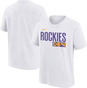 The Colorado Rockies welcome fans of all ages to "Colorful Colorado" with this 2025 City Connect Wordmark T-Shirt from Nike. Inspired by the diverse landscapes and natural beauty of the Centennial State, this City Connect gear combines Colorado's colorful scenic views with the Colorado Rockies logo to create a truly unique and eye-catching piece. With a soft and breathable cotton construction, your young fan will be able to represent their favorite MLB team in style and comfort this season.