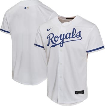 Get your young fan ready to cheer on their favorite team with this Kansas City Royals Home Game Jersey from Nike. This jersey boasts a classic button-down design and is crafted with lightweight, breathable fabric, ensuring your young fan stays cool and comfortable whether they're at the ballpark or cheering from home. The heat-applied Kansas City Royals logo and Nike Swoosh showcase their fandom with vibrant, durable graphics, making it the perfect way to rep their favorite team all season long.