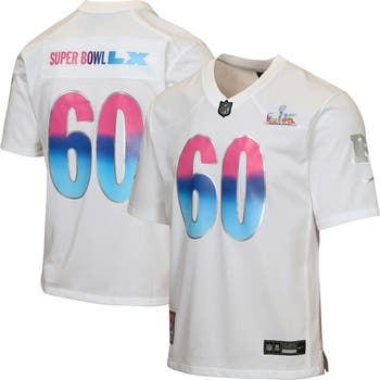 Gear up your young fan for the biggest game of the year with this Super Bowl LX Game Jersey from Nike! Nike's Move To Zero technology ensures this jersey is crafted with at least 50% recycled content, combining sustainability with high performance. This durable, smooth tricot fabric jersey features breathable mesh panels, a stitched-down NFL Shield, and embroidered tackle twill graphics, making it the perfect way for your kiddo to show their Super Bowl spirit in comfort and style. Let them represent the future of football and fashion with this essential piece of Super Bowl Merchandise.