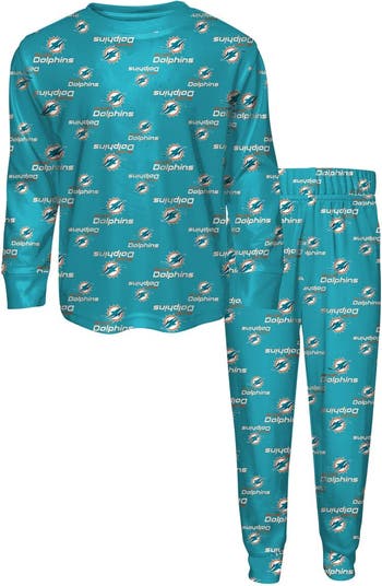 Youth Outerstuff Aqua Miami Dolphins All-Over-Print Long Sleeve T-Shirt and Pants Sleep Set
