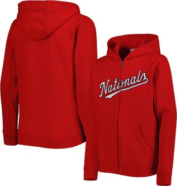 Youth Red Washington Nationals Wordmark Full-Zip Fleece Hoodie