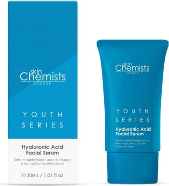 skinChemists Youth Series .% Hyaluronic Acid Facial Serum ml For Hydrated, Smooth & Youthful Skin – Your Essential Serum Struggling with dryness, fine lines, or loss of elasticity? Our Youthful Hydration Serum is expertly formulated for all skin types, delivering deep hydration and nourishment. Enriched with .% Hyaluronic Acid, this powerful serum visibly reduces fine lines and enhances skin's smoothness for a revitalised complexion. What It Does: Deeply hydrates for lasting moisture and comfort Reduces fine lines and wrinkles for a youthful appearance Improves skin elasticity and smoothness for a radiant glow Fast-absorbing and non-greasy, ideal for layering The Solution: Dry, tight skin? Experience intense hydration for all-day comfort. Visible signs of ageing? Fine lines diminish for a smoother look. Lackluster complexion? Enjoy a plump, youthful glow. How to Use: Apply - drops onto clean, dry skin morning and night. Follow with your favourite moisturiser for optimal results. Why You'll Love It: Suitable for all skin types, including sensitive Vegan & cruelty-free Free from parabens, sulfates & artificial fragrances Shop now and transform your skin! Apply skinChemists Hyaluronic Acid Facial Serum to clean, dry skin after cleansing. This powerful serum deeply hydrates, reduces fine lines and wrinkles, and improves skin elasticity for a youthful and nourished complexion. Use morning and night for optimal results.