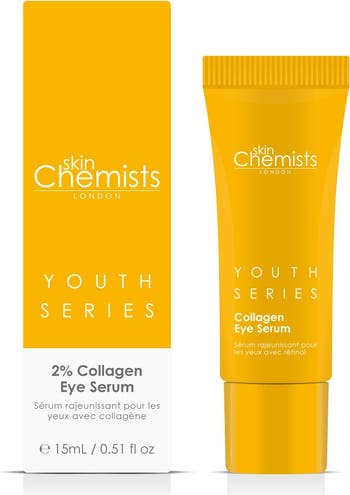 skinChemists Youth Series % Collagen Eye Serum ml For First Signs of Ageing – Your Eye Area Revitaliser Concerned about fine lines and dullness around your eyes? Our Youthful Radiance Eye Serum is expertly crafted to target the initial signs of ageing in the delicate eye area. Enriched with naturally derived actives, it enhances skin elasticity and structure, delivering smoother, brighter under-eye skin for a youthful glow. What It Does: Boosts elasticity & firmness for a lifted appearance Brightens dark circles, revealing a refreshed look Supports natural collagen production for healthier skin Lightweight & fast-absorbing, perfect for day and night The Solution: Fine lines? Our serum smooths and revitalises. Dullness? Experience a brightened, awakened look. Loss of firmness? Enjoy a plumper, more youthful eye area. How to Use: Apply a small amount to clean, dry skin around the eyes morning & evening for best results. Why You'll Love It: Suitable for all skin types, including sensitive Vegan & cruelty-free Free from parabens, sulfates & artificial fragrances Shop now and reveal your youthful radiance! Apply our Collagen Eye Serum to clean, dry skin in the morning and evening after cleansing. This specially formulated product targets the first signs of ageing, improving skin elasticity and structure for a smoother and brighter under-eye area, while supporting natural collagen production for a healthier and more youthful appearance.