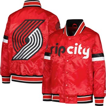 Youth Starter Red Portland Trail Blazers Home Game Varsity Satin Full-Snap Jacket