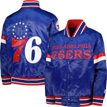 Youth Starter Royal Philadelphia 76ers Home Game Varsity Satin Full-Snap Jacket