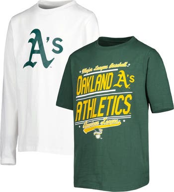 Give your young Oakland Athletics fan a jumpstart in their collection with this combo set from Stitches. It features a short sleeve and long sleeve T-shirt with bold team graphics. This versatile set will give the perfect Oakland Athletics look for any occasion.