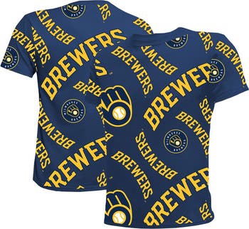 Youth Stitches Navy Milwaukee Brewers Allover Team T-Shirt