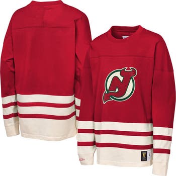 Youth Mitchell & Ness Red New Jersey Devils Chainstitch Heavyweight Long Sleeve Top