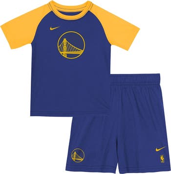 Get your young fan ready to cheer on the Golden State Warriors with this Nike Practice T-Shirt & Shorts Set. Made from breathable polyester, this set features the iconic Golden State Warriors logo on both the shirt and shorts, letting your young fan rep their favorite team both on and off the court. This versatile set is perfect for practice sessions, game days, or just showcasing their Golden State Warriors spirit wherever they go.