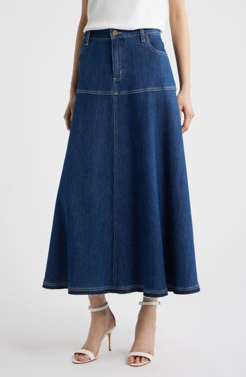 Switch things up for denim skirt day with a dark-rinsed option cut to skim the ankle and offered with a statement hem.