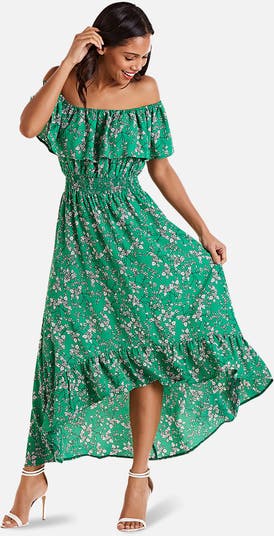 Elongate your profile with this maxi dress. Featuring ruffles falling from the bust and the hemline, this party dress is designed with an asymmetric hemline that provides all the flow your evening will need.