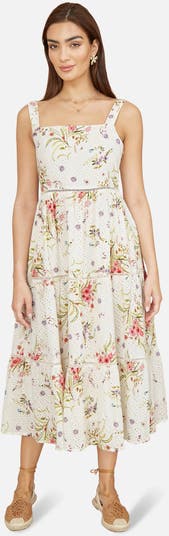 This midi dress made from a beautiful floral broderie anglaise cotton. A sun dress with a difference that will be look for day time summer dates or sunshine filled vacations. The waist and skirt are embellished with a lace trim to enhance the look.