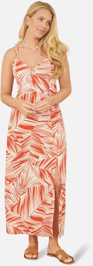 The maxi dress is a holiday essential this season, with a cross over back, strappy sleeves and that beautiful all over abstract leaf print. The shape is relaxed and super flattering, with a split in the hemline for a super flirty feel.