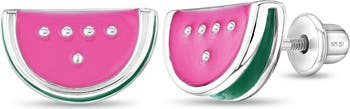 Looking for a fun pair of screw back earrings for your little girl? These super charming watermelon slices are crafted of brightly colored enamel and crafted from 925 sterling silver for a sleek and polished finish that's sure to attract attention. Securely fastened with safety screw backs, you won't have to worry about your little one losing a watermelon on the playground. Order today and we'll neatly package this charming pair of watermelon earrings into a lovely gift box for you.