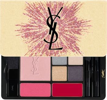 What it does: Adorned with Yves Saint Laurent's iconic Cassandre logo placed in the backdrop of sparkling fireworks, this must-have palette helps you achieve a luminous and electrifying look. The palette includes a rosy pink highlighter infused with ultra-fine platinum pearls to illuminate the cheekbones and any other part of the face you want to give a soft glow to; four dazzling eyeshadows in soft pink, silver grey, champagne gold and dark purple to create a sparkly, smoky eye inspired by colorful fireworks; and two satin lip colors in light rose and deep red to add a touch of fire to your lips. Mini blush, shadow and lip brushes complete the collection.