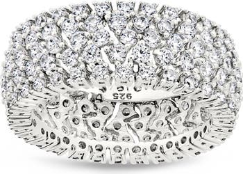 Five rows of artfully stacked cubic zirconia give the illusion of sparkling layers on this stunning eternity ring crafted from polished sterling silver.