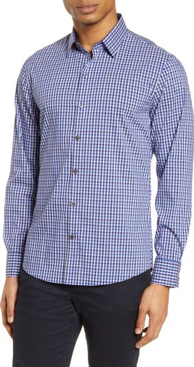 Handsome checks define a spread-collar sport shirt fashioned with just the right amount of comfortable stretch.