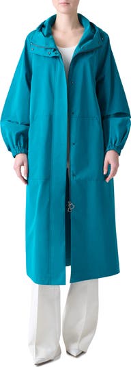 A water-repellent long and lightweight hooded parka in a bright hue is just the ticket for rainy days at the supposedly sunnier times of the year. Signature trapezoid pulls detail the two-way zipper.