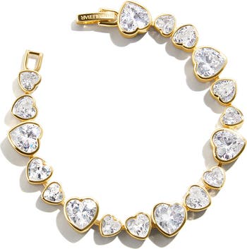 Playful cubic zirconia hearts bezel-set in goldtone plate dazzle the length of this charming tennis bracelet.