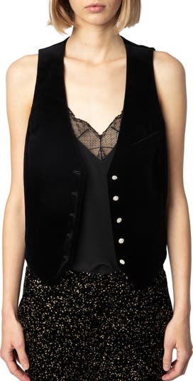 Light-catching crystal buttons instantly accessorize this fete-worthy vest elevated with plush cotton velvet lined in jacquard-woven satin.