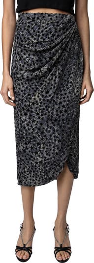 Jamelia Burnout Stars Faux Wrap Midi Skirt