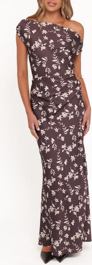 Move gracefully in this ever-enchanting satin maxi dress designed with a drapey one-shoulder neckline and ruching at one side that creates a shapely silhouette.