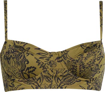 This bikini top printed in a baroque floral is designed with molded cups and corset-style boning for a flattering fit.