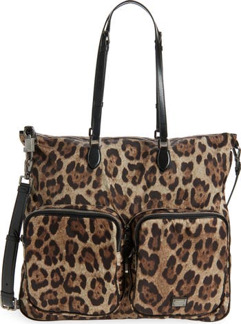 This printed reversible bag is fitted with adjustable leather shoulder straps and a removable crossbody strap for versatile carry options, while zippered pockets provide secure storage.