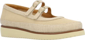 Side mesh panels provide an airy update for this versatile mary jane wedge grounded by a cushy and supportive footbed.