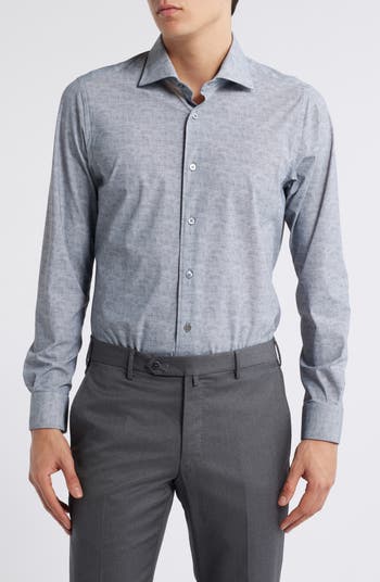 Zanella Jagged Heathered Herringbone Print Knit Nylon Blend Dress Shirt
