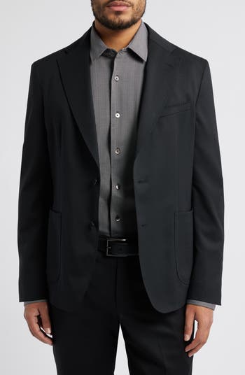 Worsted Italian wool cast in a dark solid makes a versatile staple of a sport coat that's crafted with a touch of stretch and styled to elevate any formal or semiformal look.