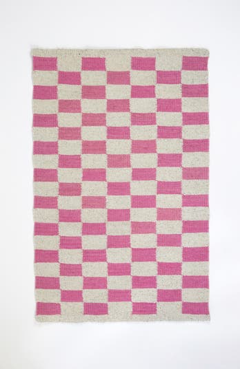 Zapotec Checkered Pink Handwoven Flatweave Wool Rug