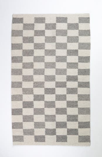 Zapptec Grey Checkered Handwoven Flatweave Wool Rug