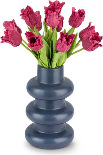 The Zara RealTouch Tulip Arrangement features vibrant fuchsia RealTouch tulips arranged in a striking navy bubble vase. This bold and elegant piece adds a perfect pop of color and sophistication to any space, making it an ideal décor piece for your home or office. A lasting luxury, timeless and unrivaled.