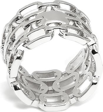 Set a contemporary tone with this unique white-gold vermeil ring crafted with hinged links that bring visually stunning texture to any look.