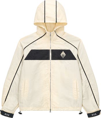 A bit of logo love authenticates a lightweight jacket that keeps breezes at bay via a fitted hood, toggle-tightened hem and a pair of adjustable sleeve cuffs.