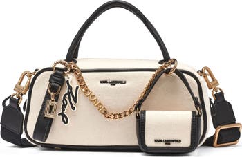 Effortlessly chic, the Karl Lagerfeld Paris Zaylia Canvas Mini Crossbody Bag combines timeless design with modern functionality. Crafted from genuine leather, it features a zippered interior with card slots for sleek organization. Perfect for brunches, soirées, or elevating everyday looks.