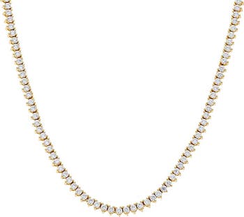 Elevate your neckline with the timeless elegance of the Adina Eden CZ Thin Three Prong Tennis Necklace. Crafted from brass and plated with luxurious 14K gold, this necklace features clear CZ stones set in a delicate three-prong design. The stones measure 2mm each, adding a subtle sparkle to your look. Available in two lengths, 16" and 18", this necklace is perfect for layering or wearing alone as a statement piece. Add a touch of sophistication to any outfit with this exquisite tennis necklace from Adina Eden.