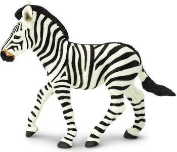 Bring the wild beauty of the savanna to your home with Safari Ltd.'s Zebra Foal toy figurine. While many mammals require significant parental care, zebra foals are notably self-sufficient from birth and are able to stand and walk on their own. Contrary to popular belief, zebras are actually black with white stripes, a fun fact that can spark children's curiosity and love for nature. Adult male zebras, unlike many mammalian species, play a crucial part in childcare. Stallions fiercely protect their infants from predators – a behavior particularly observed in plains and mountain zebras. Crafted with exceptional attention to detail, this zebra foal figurine features a unique stripe pattern, accurately reflecting the individuality found in real zebra populations. This zebra foal toy, measuring 3.5 inches long and 2.8 inches tall, is slightly larger than a deck of cards on its side, making it an ideal size for young explorers. Made from durable, non-toxic, BPA-free PVC, this figurine is part of the Wild Safari® Wildlife collection. Safe for kids aged 3 and up, it's a perfect way to inspire learning about wildlife while fueling imaginative play.