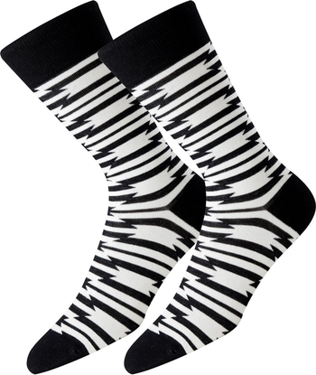 Kick a little life into your sock drawer with these abstractly marked black and white socks with black heels and toes. If your feet are happy, your day is on its way to a being good one. That's why our socks are not only durable and comfortable, they add another level of style to your wardrobe, too. These luxurious socks are soft and strong, too. Just the right choice for a day on your feet.