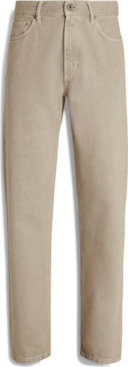 A neutral hue brings pair-with-anything versatility to these jeans cut in slim, straight-leg fit from nonstretch denim.