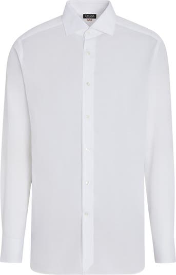 A well-balanced blend of cotton and linen brings lightweight luxury to a crisp button-up shirt topped with a cutaway collar.