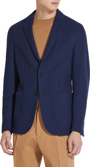 Offering jersey comfort with a tailored look, this jacket features sport coat styling with the fit and feel of a honeycomb knit from cotton-enriched wool.