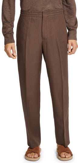A flexible drawstring waist helps to ensure daylong comfort in flat-front trousers crafted in Italy from breathable linen.