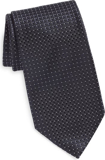 A flower-inspired pattern brings distinguished dimension to a handsome Italian-crafted tie done in lustrous silk.